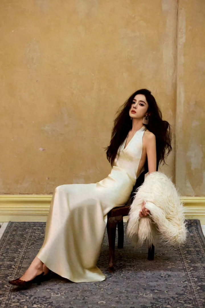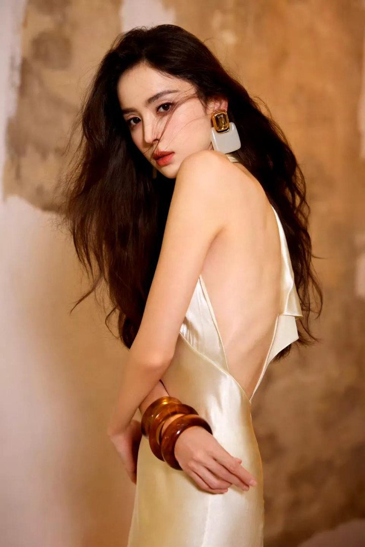 > 古力娜扎最新写真: 一袭缎面挂脖长裙, 雍容华丽, 一身迷人气质